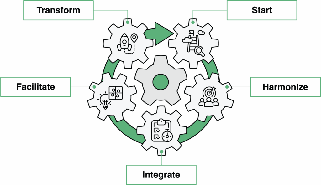At its core, this book embodies the SHIFT philosophy, a framework that goes beyond a step-by-step process to offer an iterative, adaptable approach for navigating transformation. This framework – Start, Harmonize, Integrate, Facilitate, and Transform – is designed to address the human and cultural dynamics alongside other mechanics of transformation that often determine success or failure.